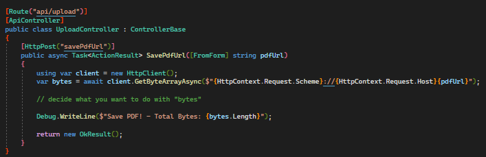 • That controller has a POST method named "SavePdfUrl"
