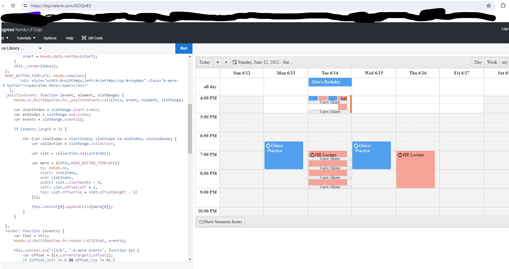 I tried suggestion given in this article https://docs.telerik.com/kendo-ui/knowledge-base/implement-more-events-button-in-week-view