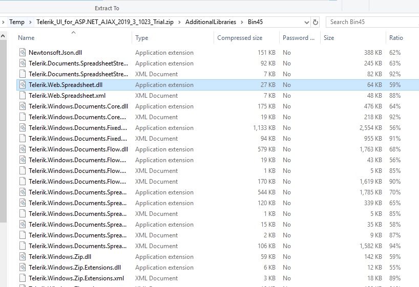 1. I didn't find Telerik.Web.Spreadsheet.dll in my download site. As you mentioned Telerik.Web.Spreadsheet.dll is the part of Telerik UI for ASP.NET AJAX. I download Telerik UI for ASP.NET AJAX and still not found it (Please see attached image). Do I have the way to download it?