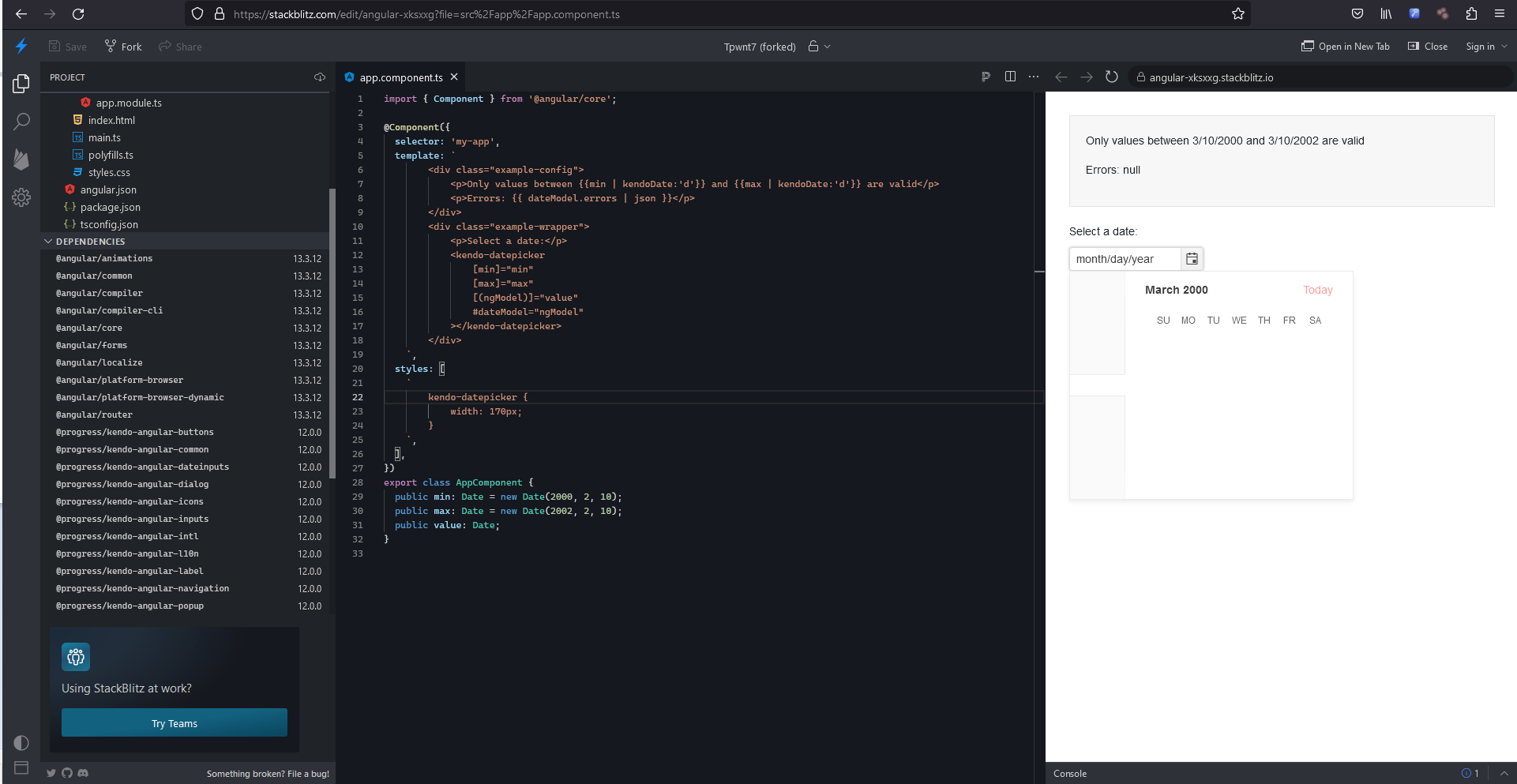 In these lines of words, please try setting an initial date to the DatePicker when min and max are specified.
