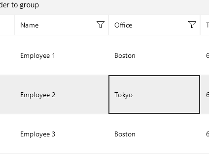 - The column's PropertyName is set to the 'Office' property of Employee object