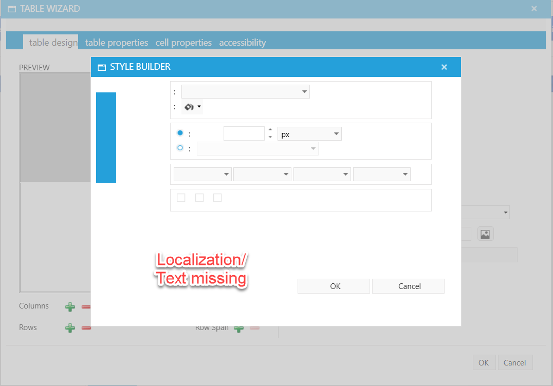 I can see the following error while opening the table style builder window. Can you help me with this?
