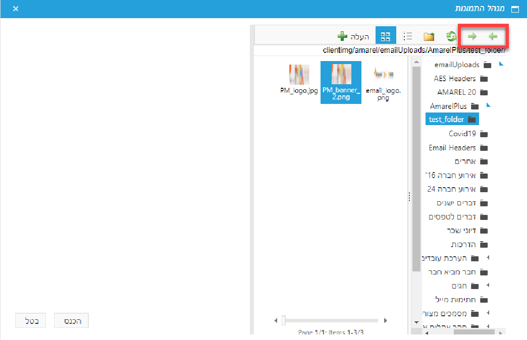 .icnForward:before { content: "\e100" !important; } .icnBack:before { content: "\e101" !important; } - Load the CSS file in RadEditor dialog through the DialogsCssFile="~/RadEditor_Dialogs_RTL.css" property. Here the path points to the RadEditor_Dialogs_RTL.css placed in the root of the web application.