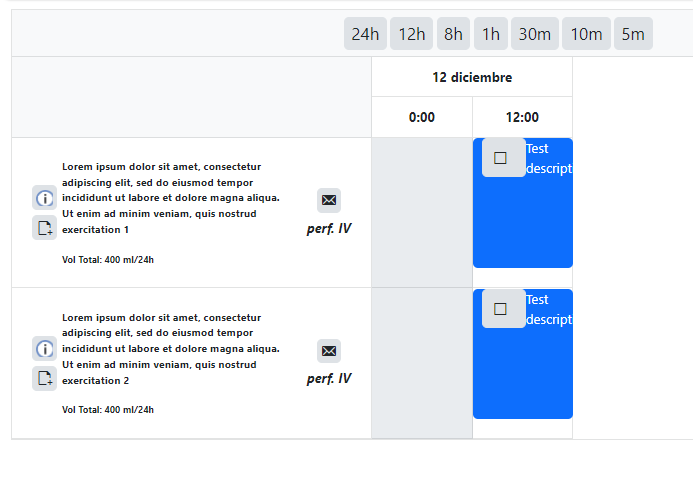 Hi, I need the SchedulerResourceGroupHeaderTemplate to have a certain size to fit a long description of the appointment and some buttons for actions. I am using the TelerikScheduler component to represent when a person should take one or several medications, but when I change the time division from 12h to 8h or lower the position of the event/appointment gets completely out of position.