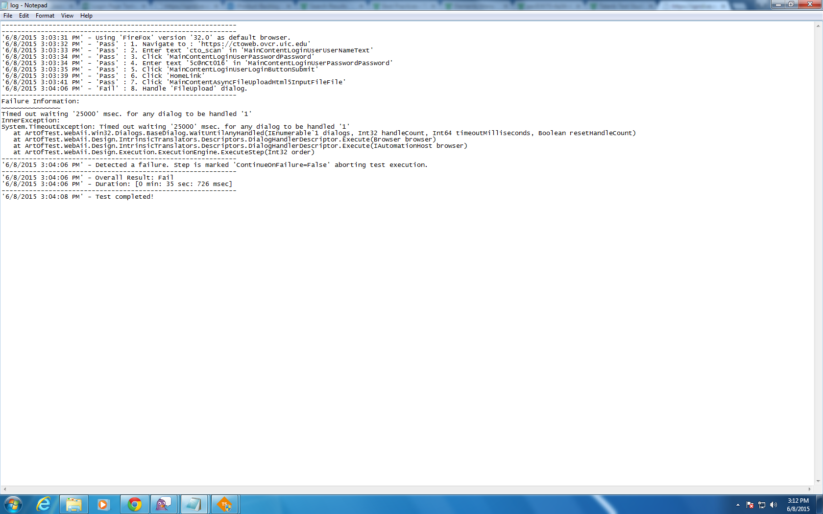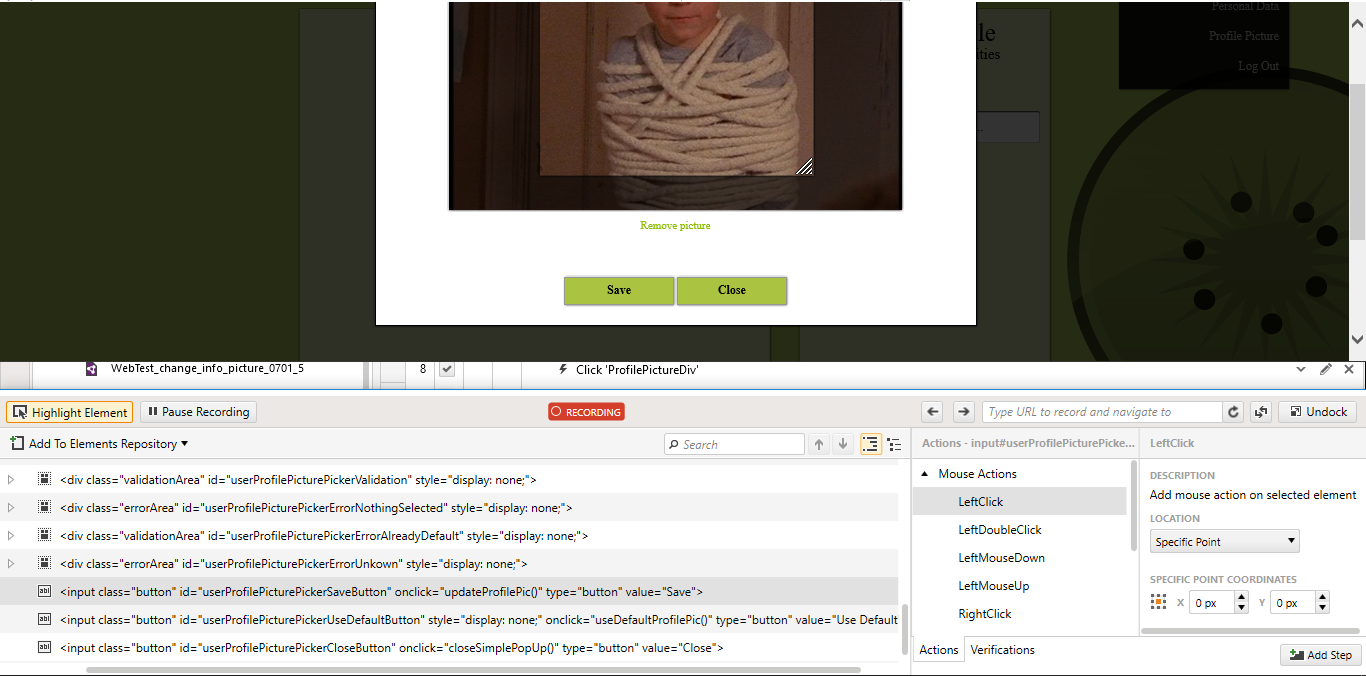 While recording, I used Firefox browser. The recorded steps included uploading a file. My application uses AjaxFileUpload control for file upload.
