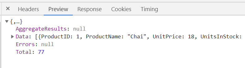 To verify that it actually returns data, you can inspect the network tab response, here is what we expect to see there: