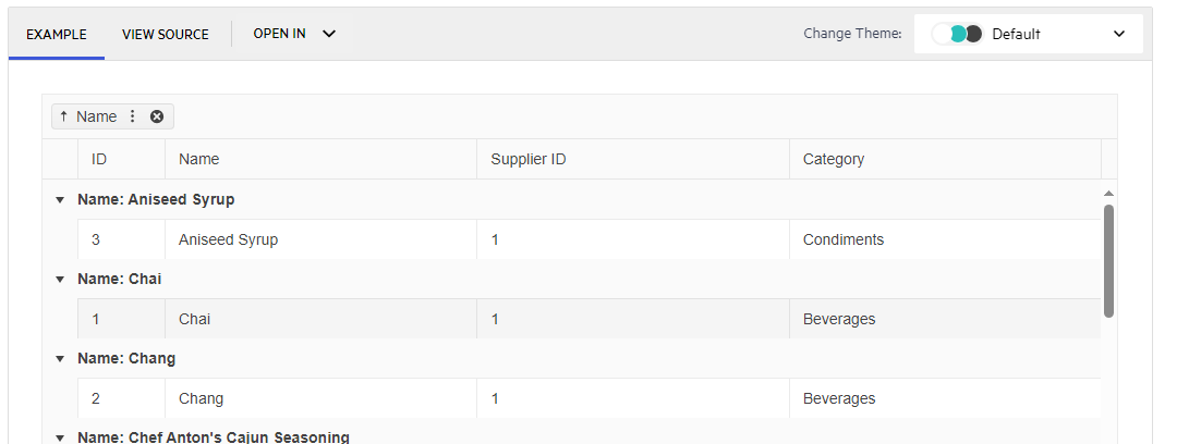 In other words, using this example, I would like to group by Name whenever the grid loads.