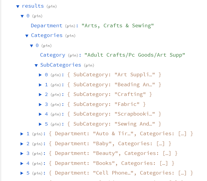 I have three layer object: there is several departments, Department have multiple categories and category have multiple subCategories: