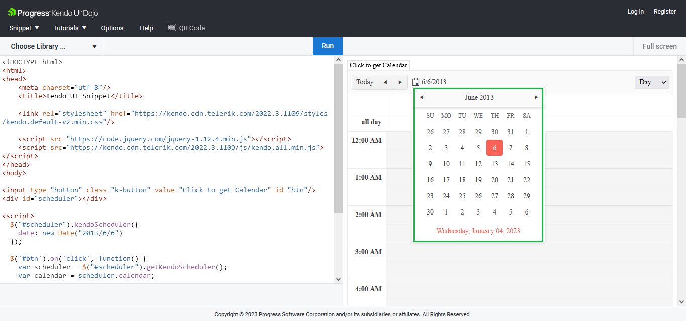 We have used one of your feature called Kendo Scheduler. Please find this link where we have refer the code to implement the kendo scheduler: https://docs.telerik.com/kendo-ui/api/javascript/ui/scheduler/configuration/views.workdays.