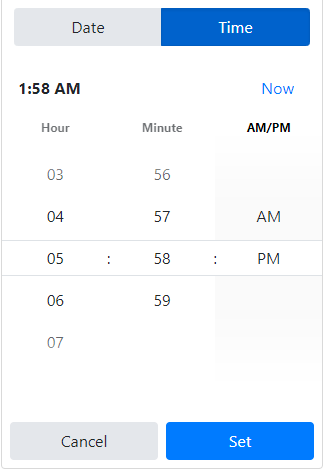 I am using the Telerik DateTimePicker ASP.NET MVC, and I noticed that after clicking onto the calendar, once I navigate to "Time" tab of the calendar, "Hour" and "Minutes" are not aligned properly. The higher "Minute" I select does not align in the center. For example, if I select "minute" 10, then it would stay in the center of the minute column. However, if I select 58 minute, then it would not be in center of the minute column.