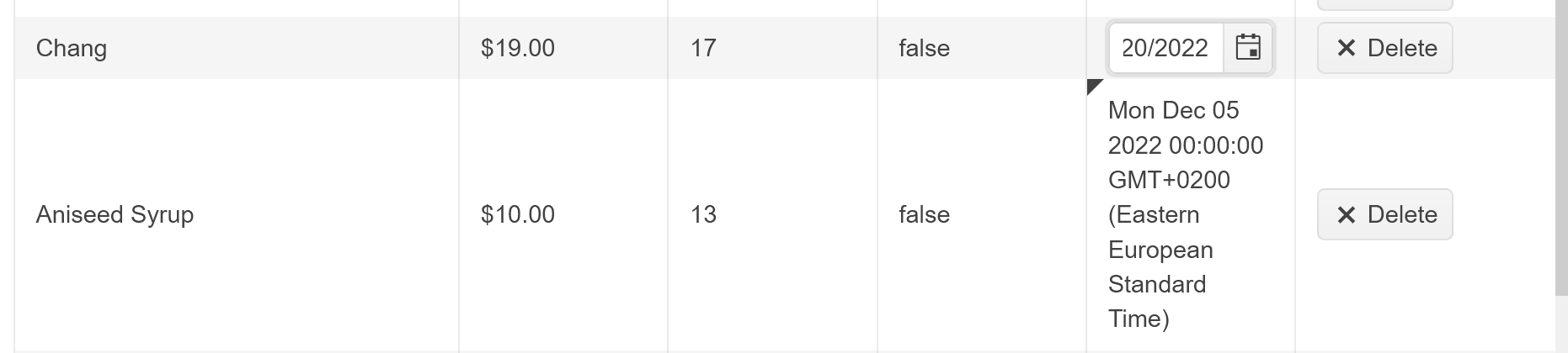 The grid is set up for in-cell batch editing. One of the fields is a date field. If the date is selected using date picker the value stays in the cell, whereas if the date value is manually entered the value does not hold in the cell. Any suggestions why the value is not holding in the cell when manually entered.
