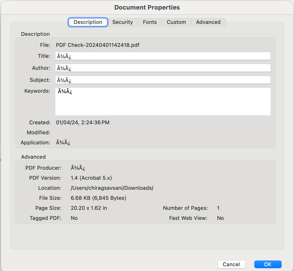 I am doing default PDF export functionality of Kendo Grid. But exported PDF file has extra characters in meta data. That results weird title of the PDF in Chrome browser. I have attached screen shot of the exported pdf and also a meta data of the file.