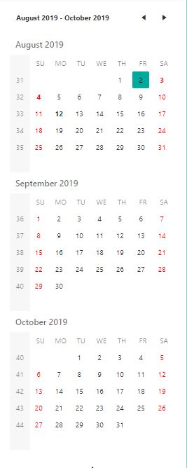 - We can set which week days to be selected using the disable-dates configuration: :disable-dates="['we', 'sa']"