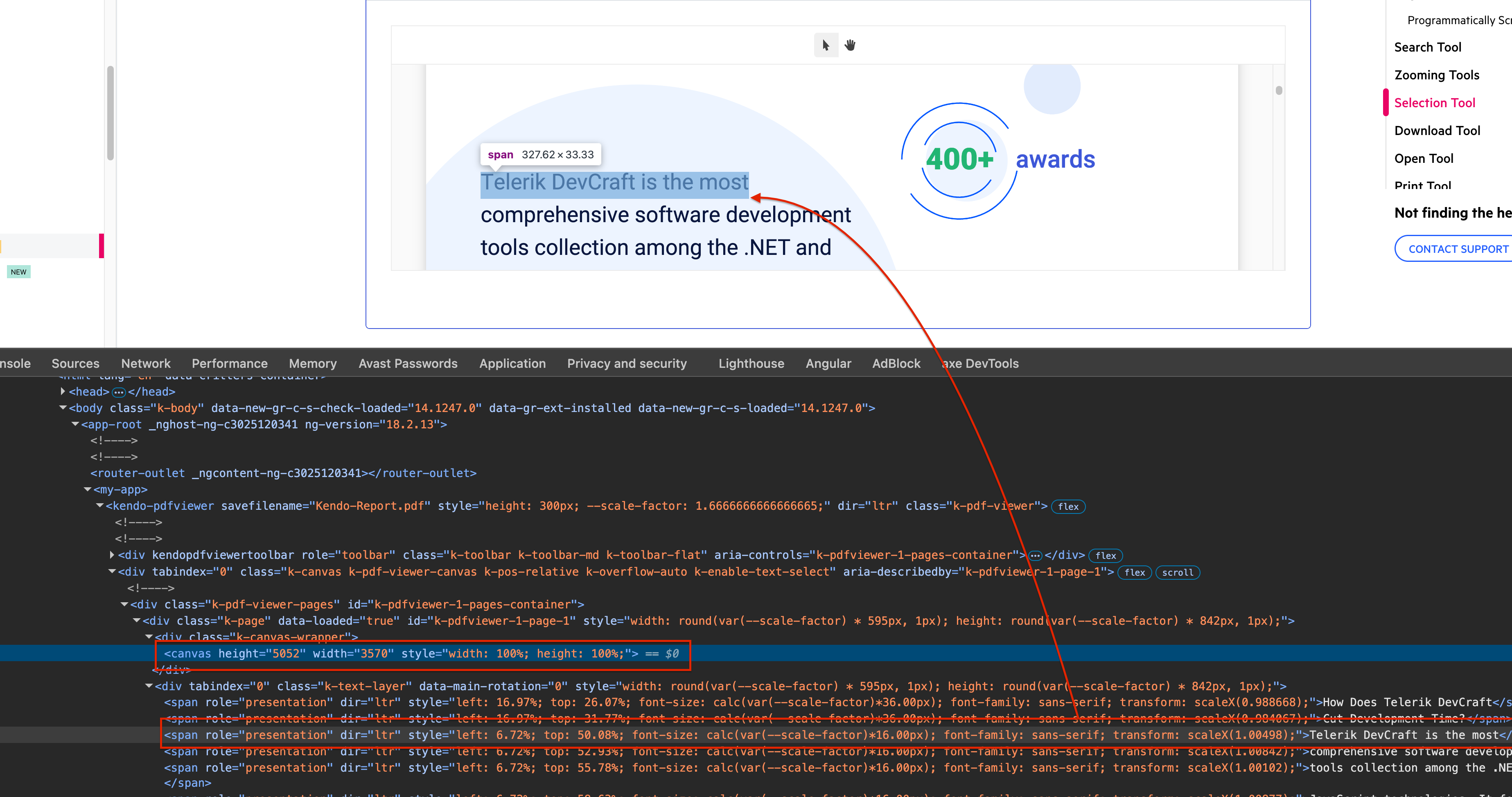 Hi! I am using kendo pdf viewer. The issue i have is that component behind the scenes is creating a canvas. This is not allowing me to ctrl + c. I am not sure why is this happening to me but not in the demo page. Do you have any clue what's happening ?