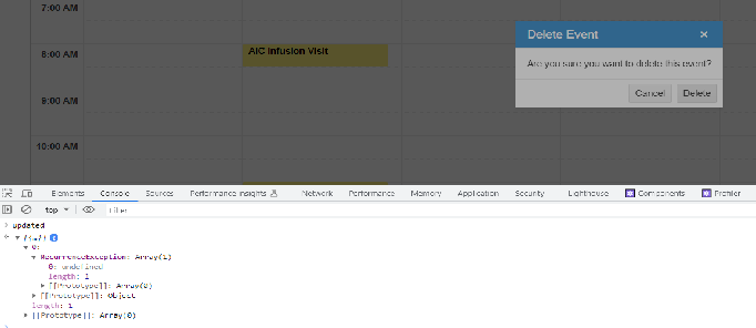 I am using React Scheduler. I was trying to delete event from Scheduler. I used onDataChange event as example in website. But When I delete, deleted array is empty and updated array returned with useless data. Please guide me how to fix it.