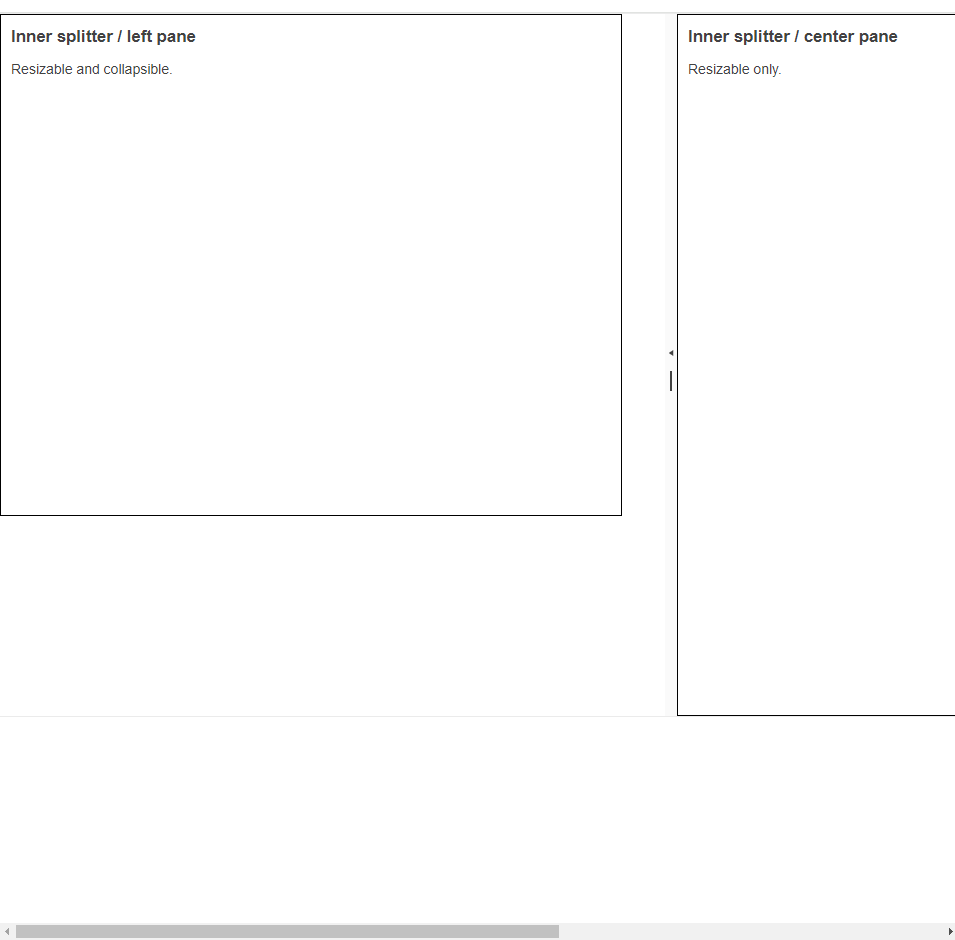 However, if once resized by the splitter bar, the pane width is not longer adjusted after browser resize events. Instead, the page shows a single scrollbar for the whole splitter.