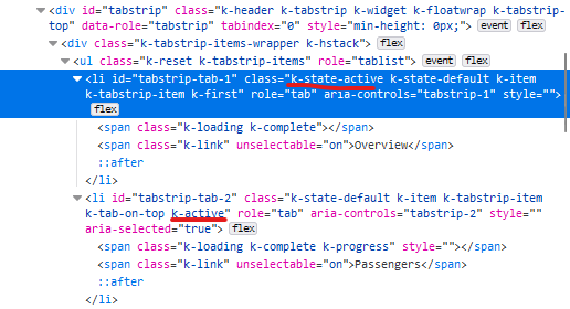 Strangely enough, when I checked the MVC demo page of tabstrip, the code won't produce k-state-active class at all. I assume your demo is using the latest version of your code. Why the difference? Cheers.