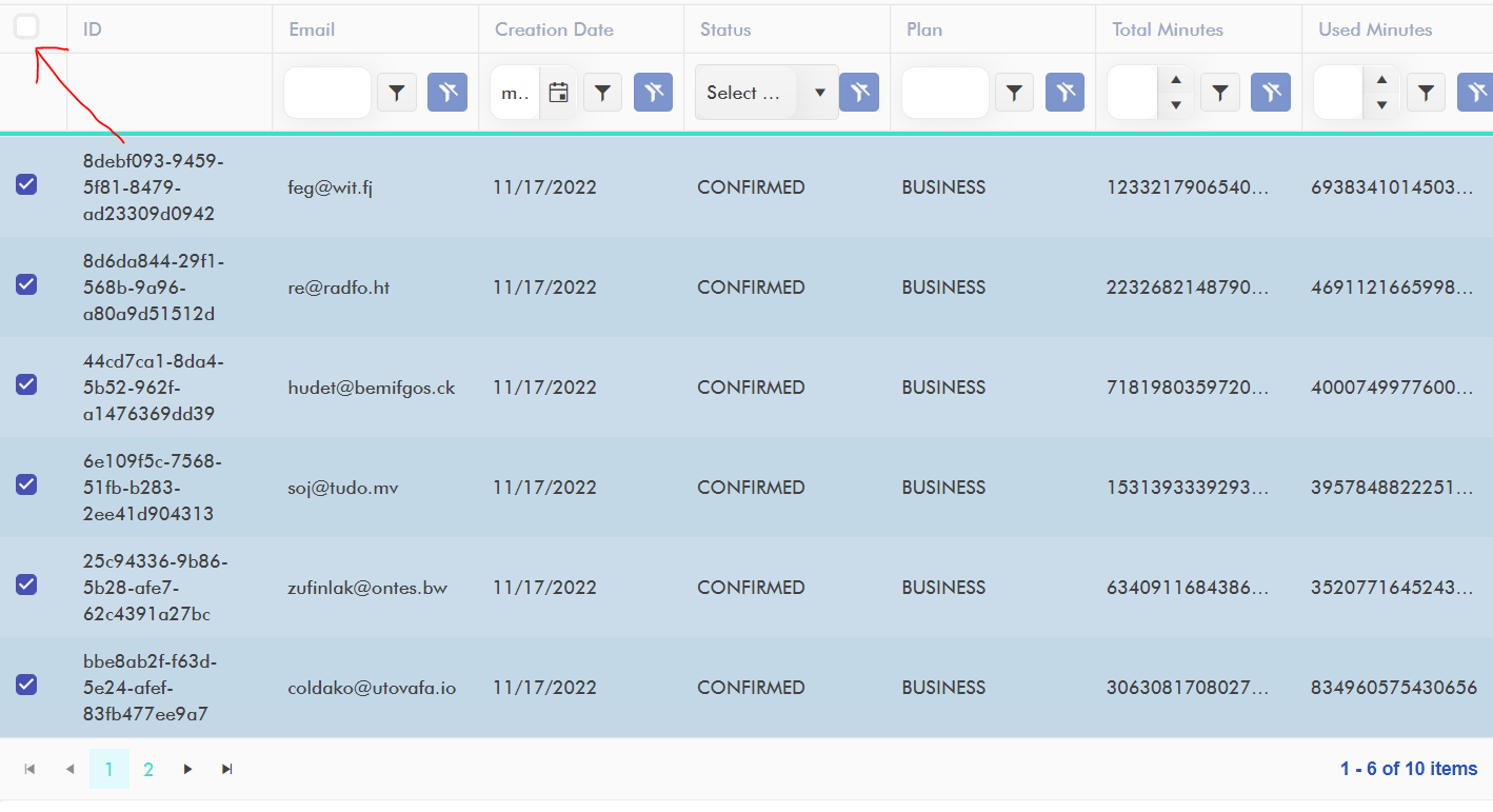 When clicking the header selection checkbox, items of the current page are checked, but the header checkbox itself is not checked.