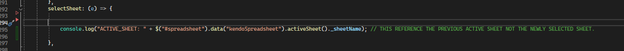 Was wondering if there is a way to get the actual active sheet as soon as it is selected. the selectSheet handler will access the previous sheet and its properties: