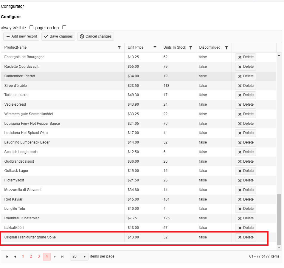 As I can not scroll below this point, I clicked on the Page 4 in the Pager and i was able to see the last row see below screenshot :