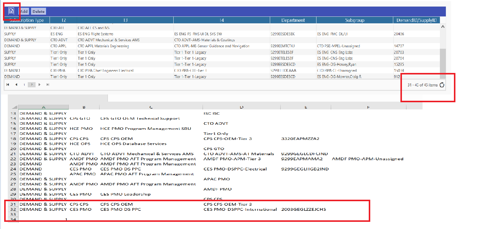 See here Data is upto 45 in Kendo Table but when we export as Excel then only upto 32 data is loading, no new data is being loaded on Excel Sheet.