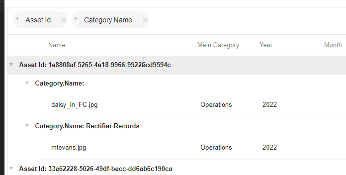 I have an object in my grid schema and column definition. Upon load i set the grouping on on the Name field of my Category object. I also hide these columns since the grid doesnt appear to know to not show them when I do this.