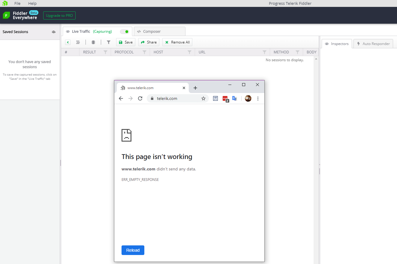 When I enable Live Traffic capture I get ERR_EMPTY_RESPONSE in web browsers