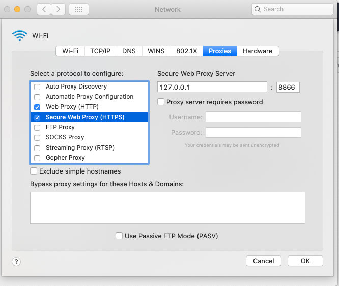 2. Can you share a screenshot of OS Proxy Settings?