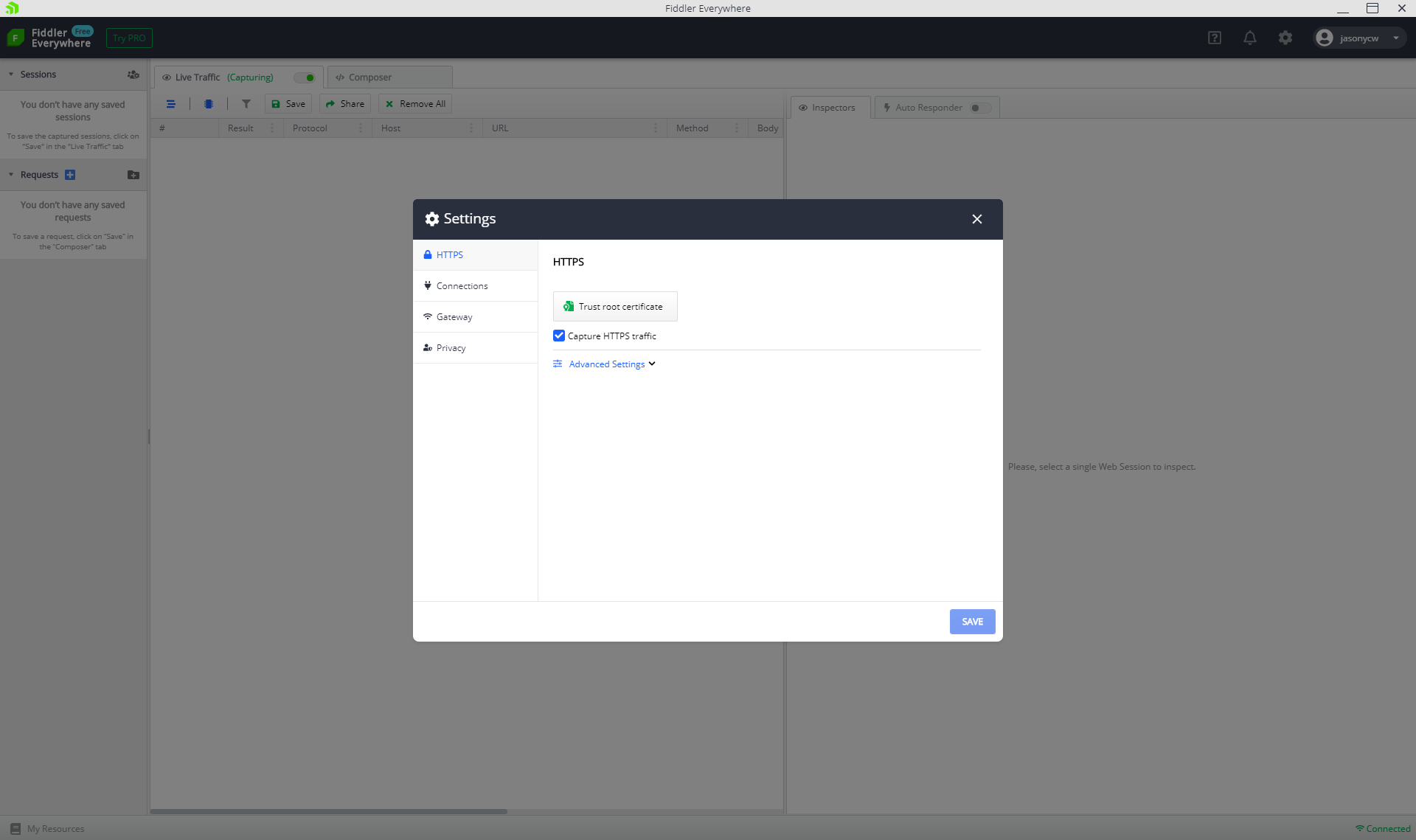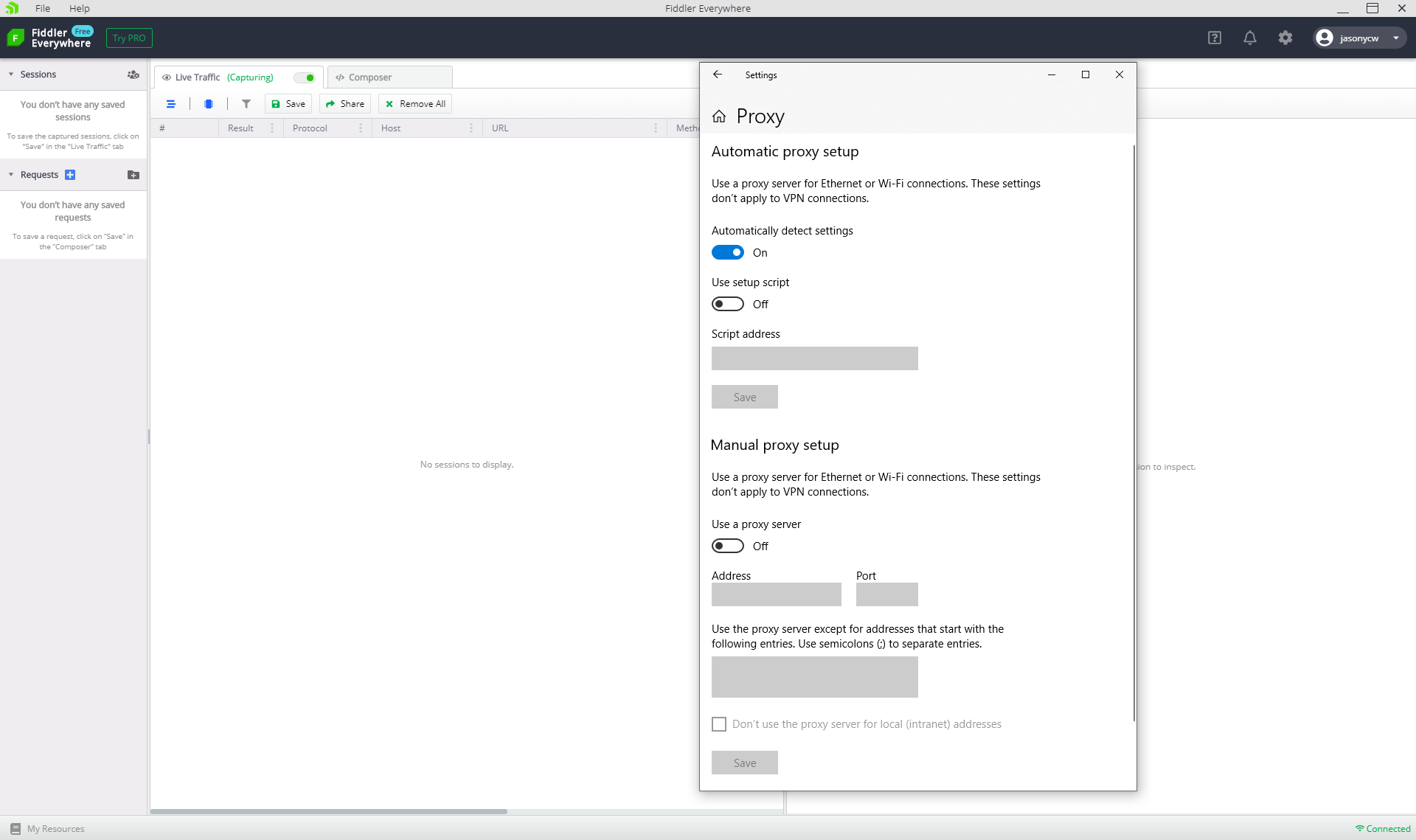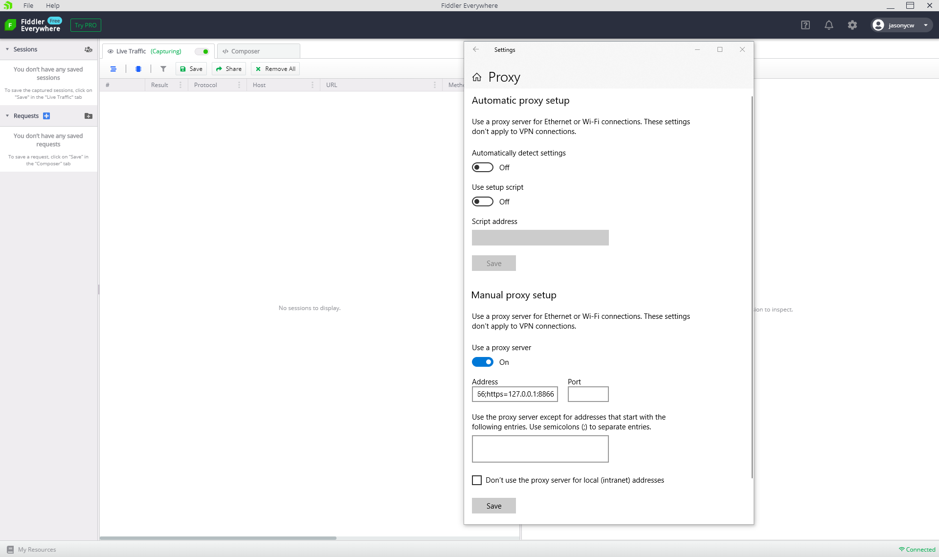 Please give the above a try and let me know if you have any additional issues. Thank you for using Fiddler Everywhere.