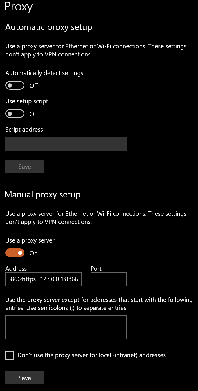 2. It always revert back to auto, I tried mannually change it back to `http=127.0.0.1:8866;https=127.0.0.1:8866`, but not working and it will change back to auto