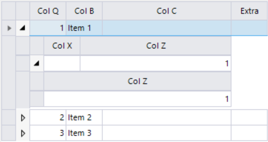 1. The user saves a layout with an older version of your application. Its layout includes the X, Y, and Z columns with their properties.