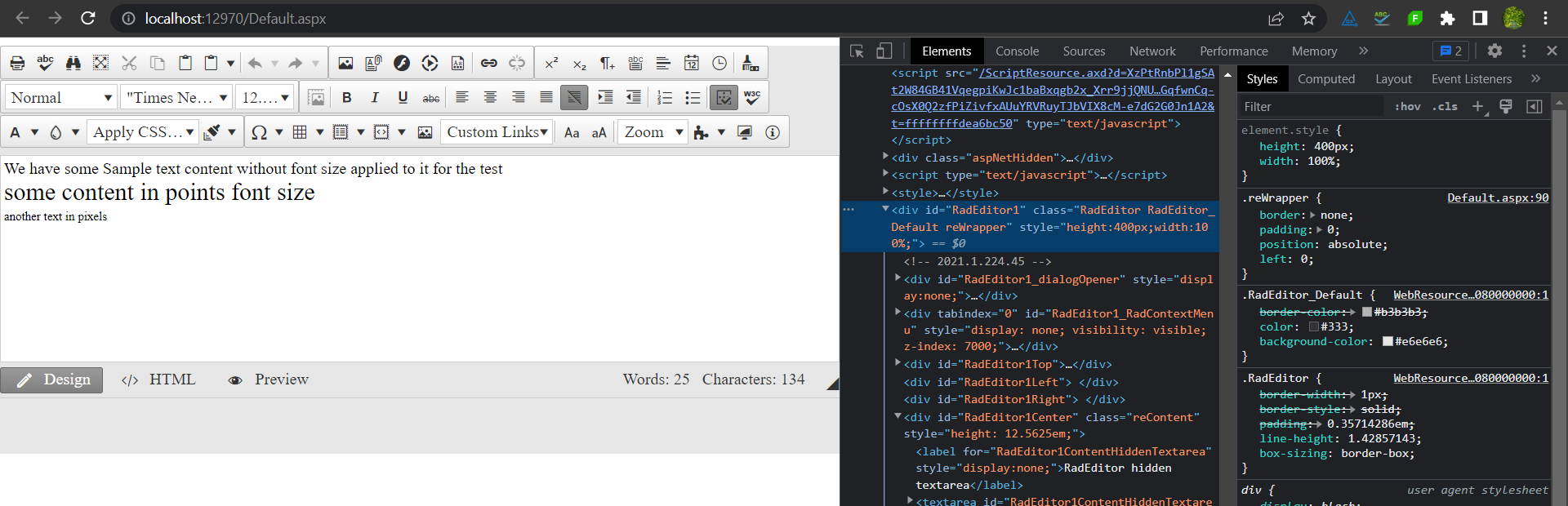 <style> .RadEditor.reWrapper { border: none; padding: 0; position: absolute; left : 0; } </style> <telerik:RadEditor runat="server" ID="RadEditor1" Width="100%"></telerik:RadEditor>