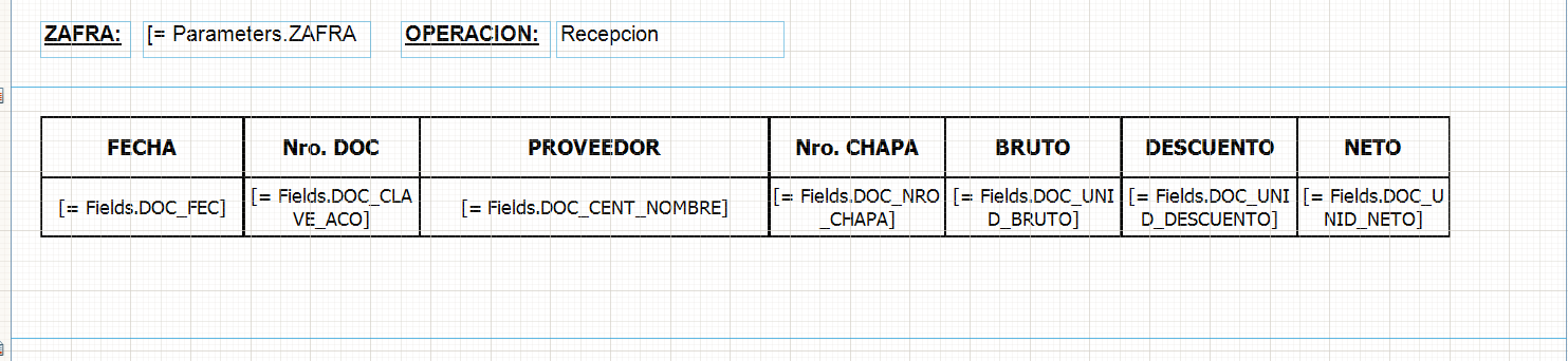 - I tried to use the expressions SUM(DOC_UNID_BRUTO) and SUM(DOC_UNID_DESCUENTO) try to get the Total SUM of these fields but are just getting the individual first value.