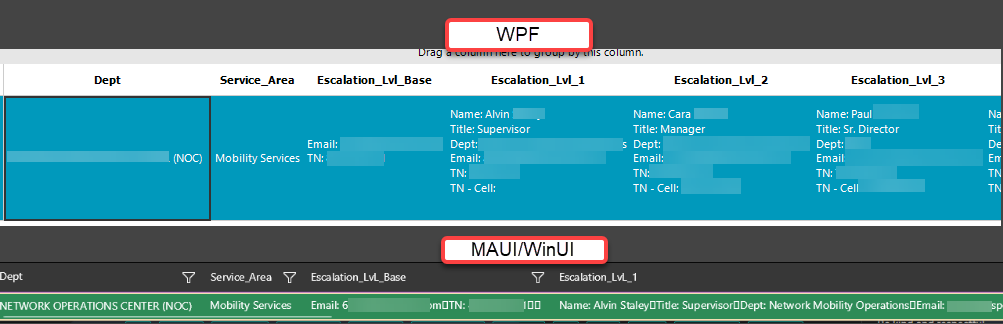 Using the RadDataGrid MAUI control does not seem to be formatting as the normal windows WPF GridView control.