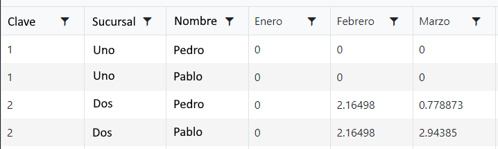 I have a KendoGrid where there are two rows for each record, the first two fields are repeated, I would like to merge two cells and make a single row with them, but the rest of the fields belonging to those records remain in their two different rows.