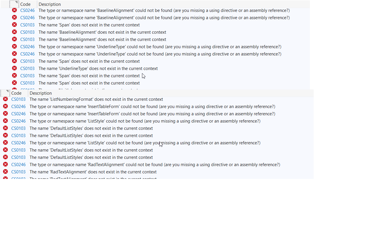 - The type or namespace name 'RadDocument' could not be found (are you missing a using directive or an assembly reference?)