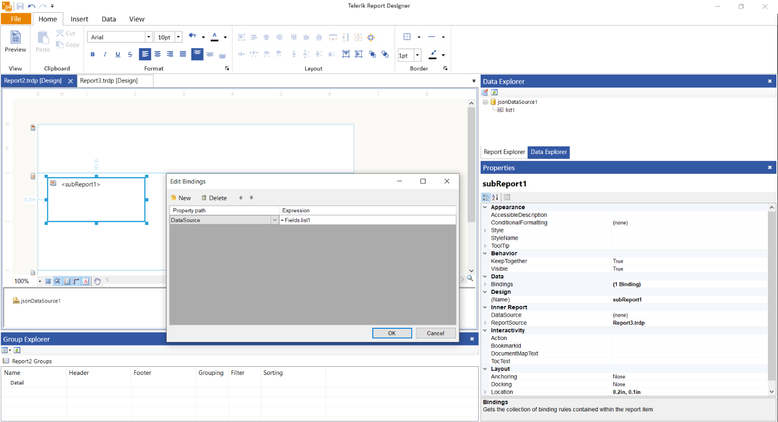 I have an existing report which has 7 sub-reports. The main report has a dataset which has all the data for the child sub reports. Each child report have a single parameter that controls logic on how the data is formatted/presented when rendered. Under the ".cs" flavor, I had more control of the data binding process and could point each sub report to its relevant data source and set the parameter to the required values. I seem to lack this ability in the .trdp flavors.