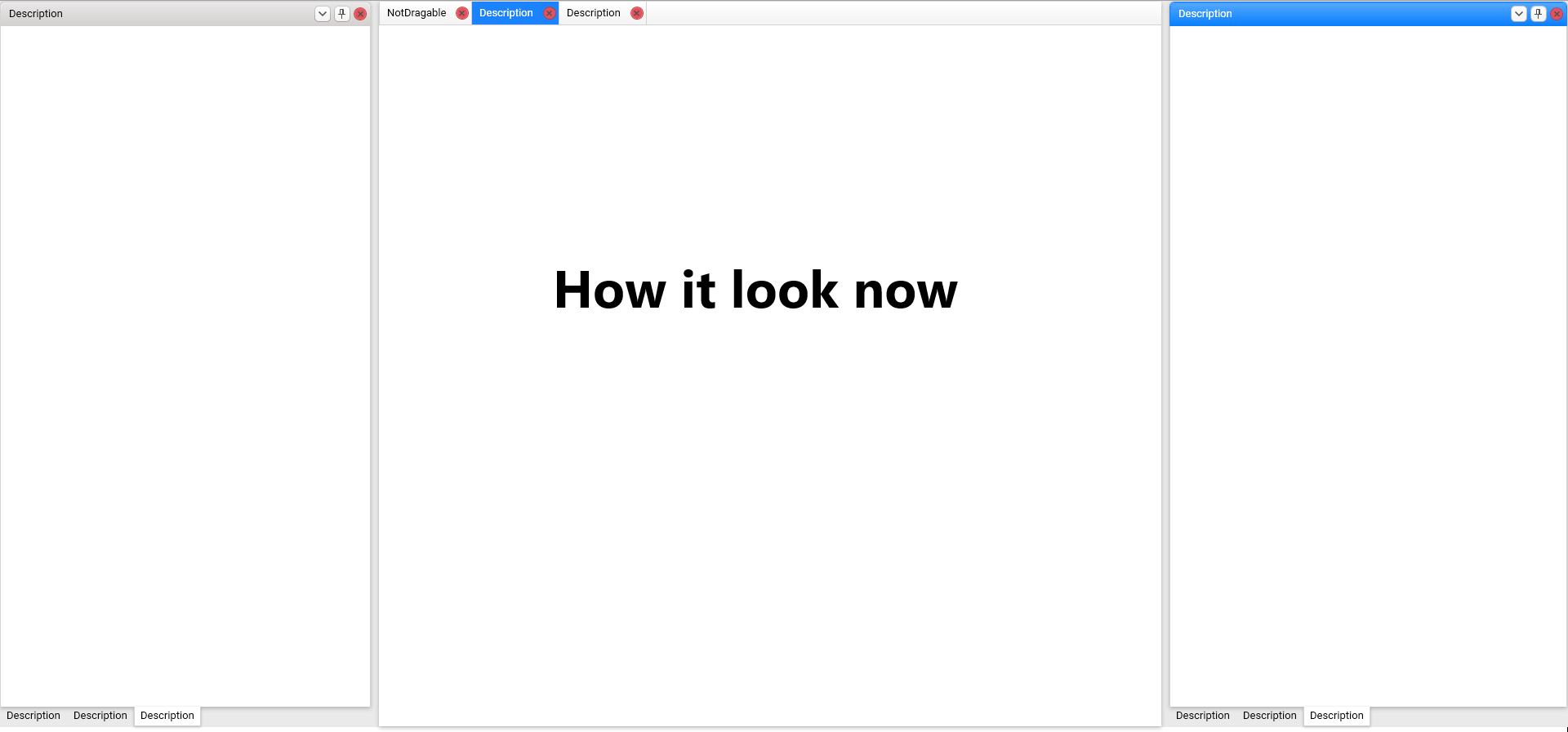 I would to place all of them at top, seems like I would to have same behavior as DocumentHost, but everywhere. Cause when I'm tried modified template of RadPaneGroup, and placed the buttons at first Grid.Row it's breaking behavior of RadPanes when you would to Drag them.