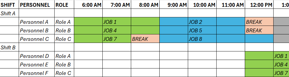 Is the below format possible in Scheduler. (Multi resource Grouping by Shift and then by Personnel and then by Role. )