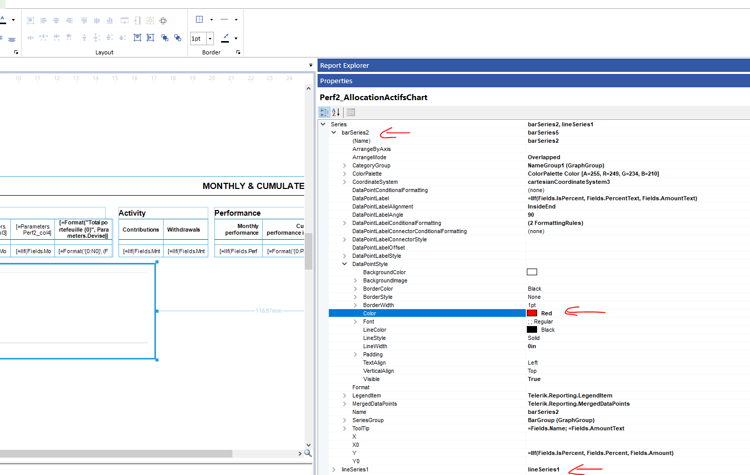 We are looking for a solution to draw 2 series of chart in the same Graph: LineSeries and BarSeries. We did it successfully in Telerik WPF but not in Reporting.