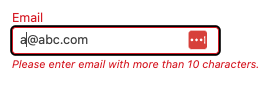 const emailValidator = (value) => emailRegex.test(value) ? "" : "Please enter a valid email."; const lengthValidator = (value) => value && value.length > 10 ? "" : "Please enter email with more than 10 characters.";Each of the above functions is passed to the Form field using the following configuration: