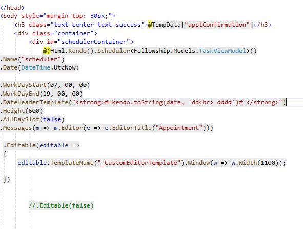 In the MVC scheduler, I want to change the text of the SAVE button to text when I am using the addEvent functionality. It is simply a create appointment template.