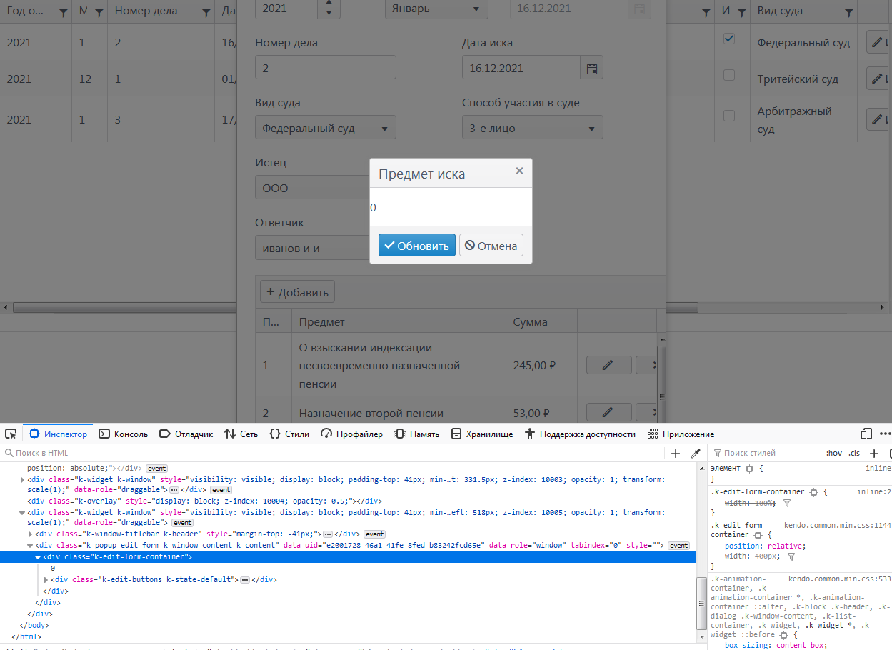 The data is displayed in my nested grid (binds to the main grid's collection property) inside the main grid's editor template. But when I try to add/update the data the editor template is found but not displayed correctly. For some reason it just shows 0 instead of the editor template content. What could be the problem here?