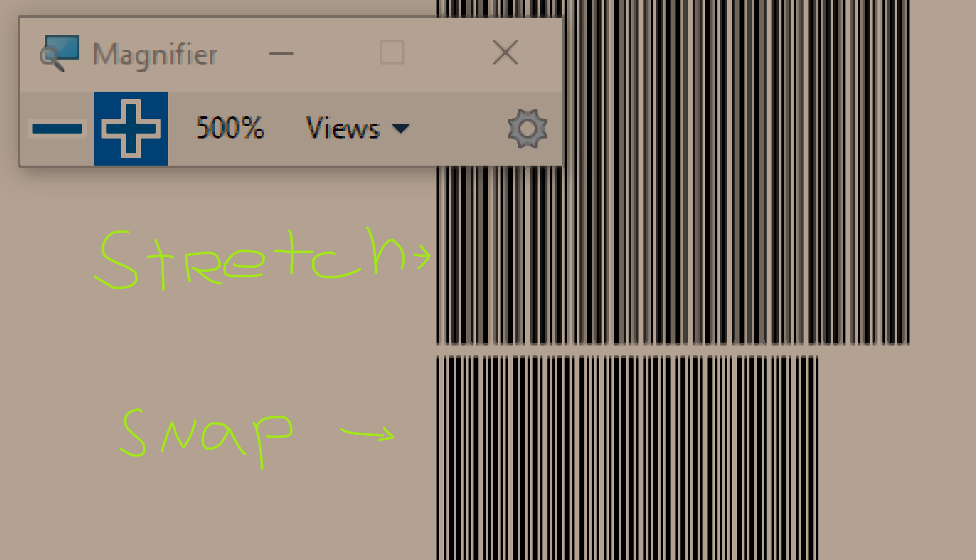 I've been digging around the barcode and trying to find a way to improve the new barcode so your case would work. I noticed that the UseLayoutRounding property of the RadBarcode control has its default value of false and switching it to true improves the crispness of the barcode in stretch mode massively. Could you try setting the UseLayoutRounding property of the control in your code to true and see whether this improves the readability on your end?