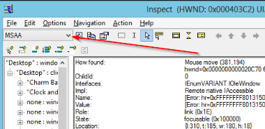 For example, Inspect (Inspect.exe) can spy Microsoft UI Automation properties and control patterns, as also Microsoft Active Accessibility (MSAA) properties, by switching Inspect from UIA to MSAA:
