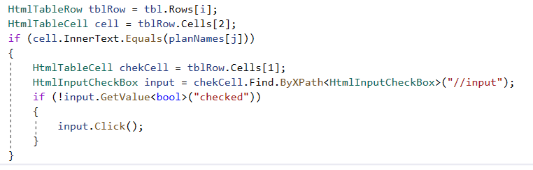 RadGridView grid = Pages.proj1.SilverlightApp.MasterDataGridTigerradgridview;IList<GridViewRow> rows = grid.Find.AllByType<GridViewRow>();GridViewCell cell = rows[r].Cells[StatusCol];cell.User.Click(MouseClickType.LeftDoubleClick);cell.Refresh();CheckBox Active = cell.Find.ByAutomationId<CheckBox>("activeCheckBox");//CheckBox Active = cell.Find.ByType<CheckBox>();if (Active.IsChecked == false)Active.Check(true);Hope this helps!