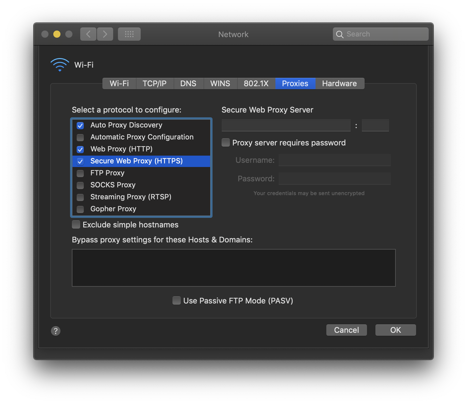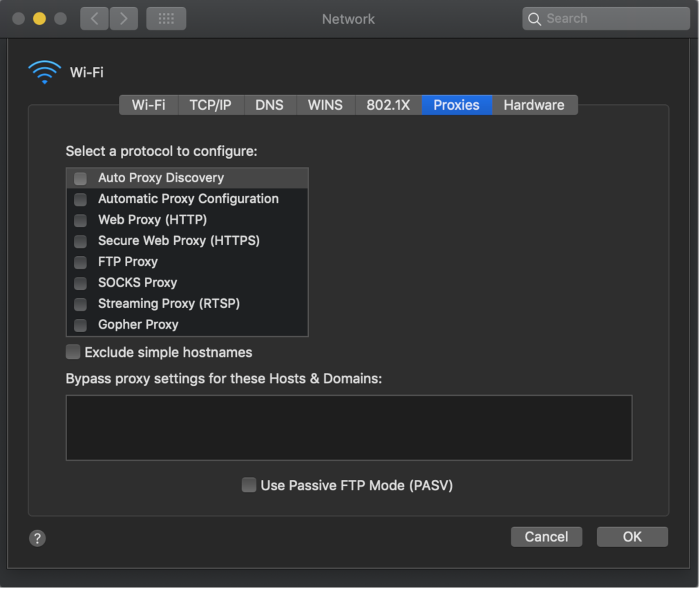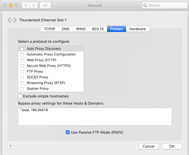 Whenever I change my Mac proxy settings and click "ok" and then "apply" in the Network dialog box, nothing happens, and when I go back into the Mac proxy settings the checkboxes are unmarked.