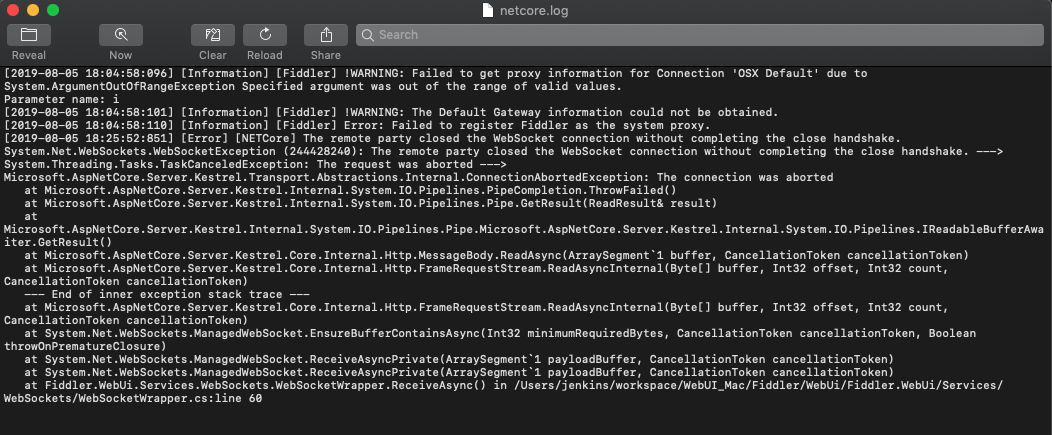 at Fiddler.WebUi.Services.WebSockets.WebSocketWrapper.ReceiveAsync() in /Users/jenkins/workspace/WebUI_Mac/Fiddler/WebUi/Fiddler.WebUi/Services/WebSockets/WebSocketWrapper.cs:line 60