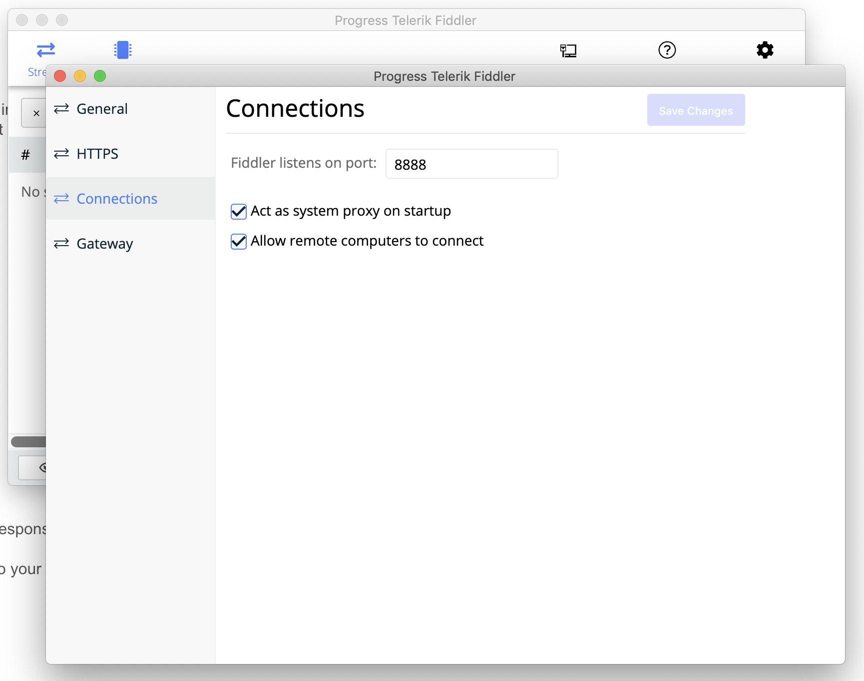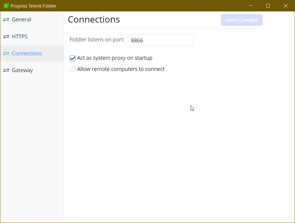 2. The proxy checkboxes are not checked automatically when launching 'Fiddler'.
