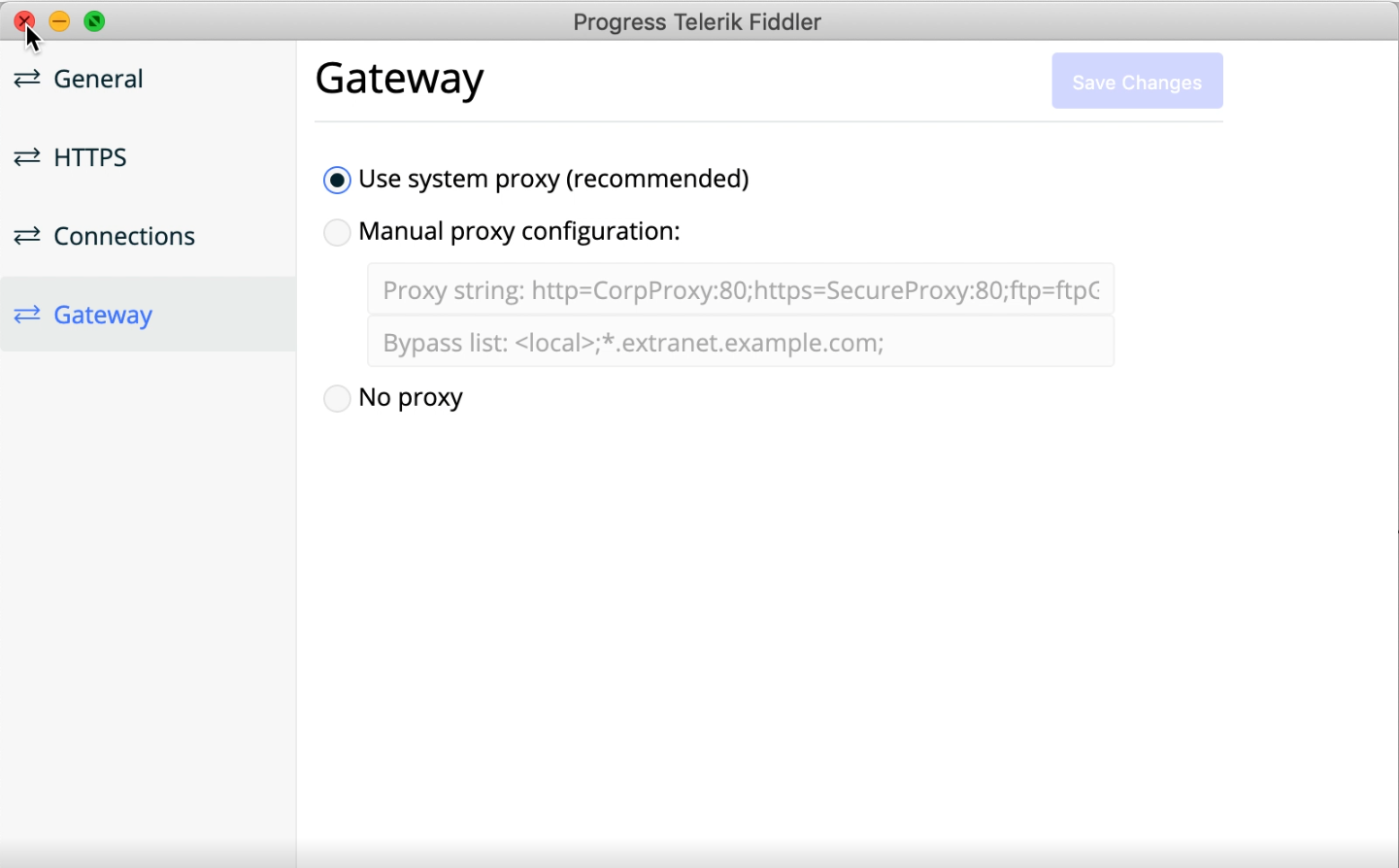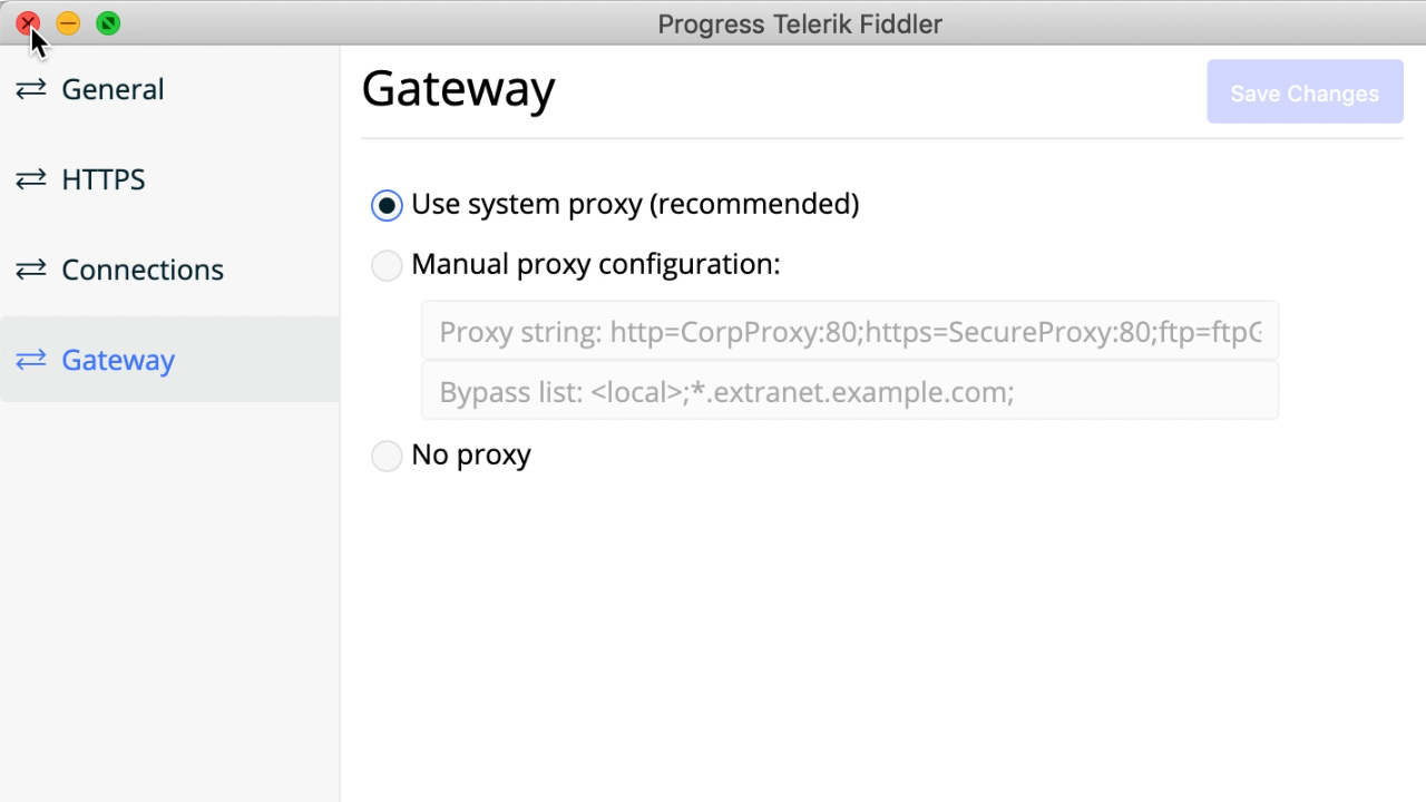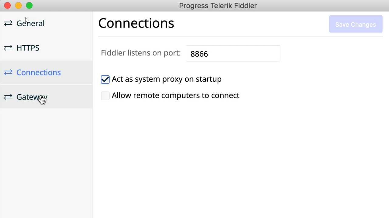 If the above behavior is not working as expected, I recommend checking the Web Proxy (HTTP) and Secure Web Proxy (HTTPS) items while Fiddler Everywhere is running and verifying that Capturing works.